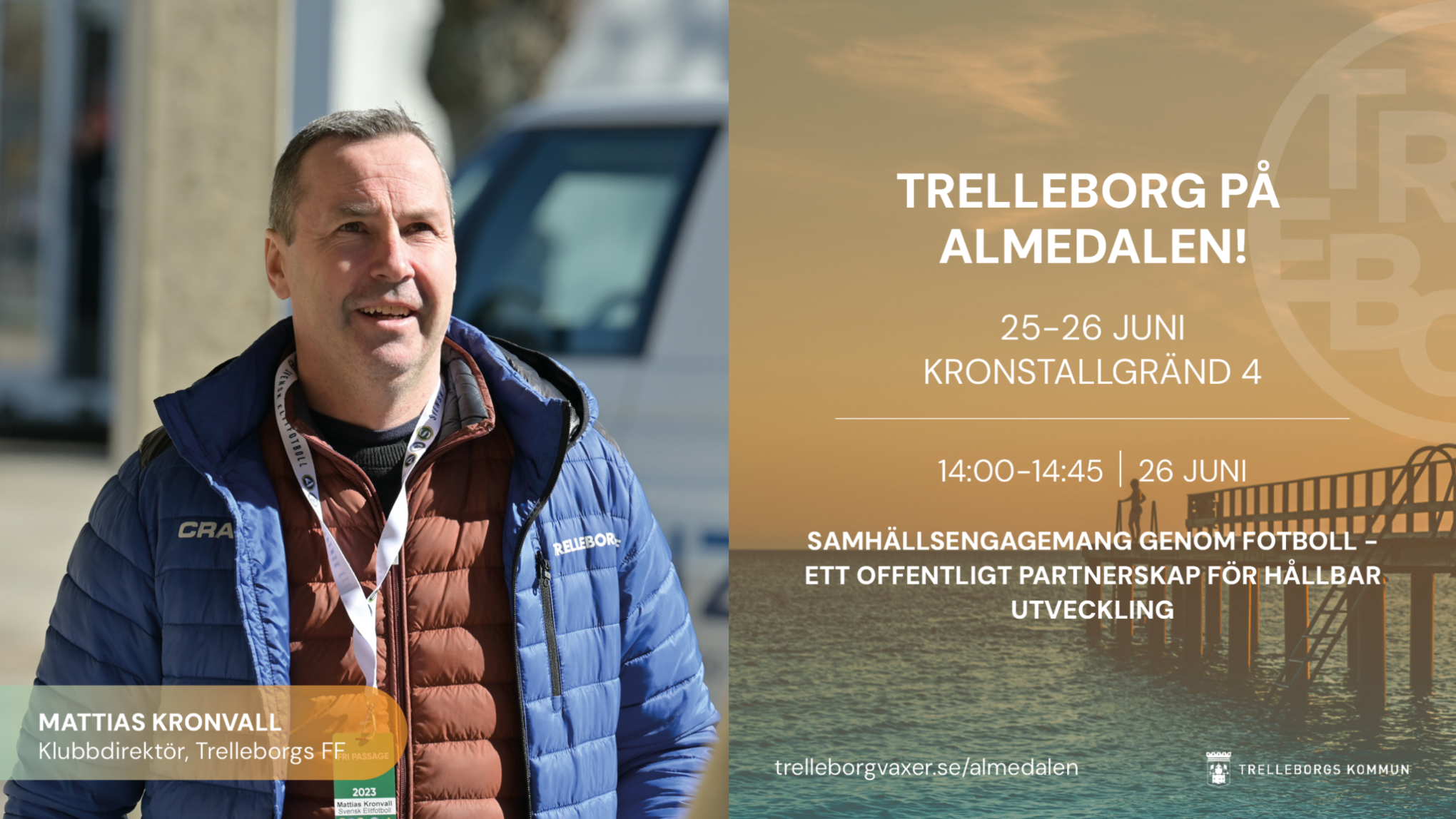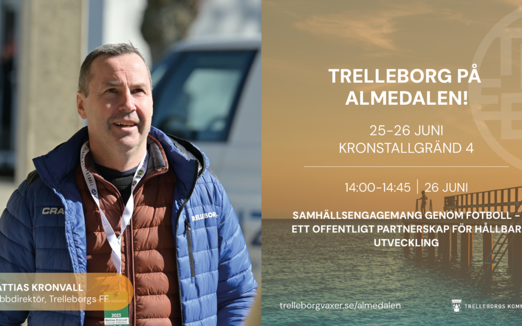I Almedalen delar han konkreta exempel på hur Trelleborgs FF arbetar med inkludering, utbildning och lokalt samarbete – och hur fotbollens kraft kan kanaliseras för att bidra till ett tryggare och mer hållbart samhälle.