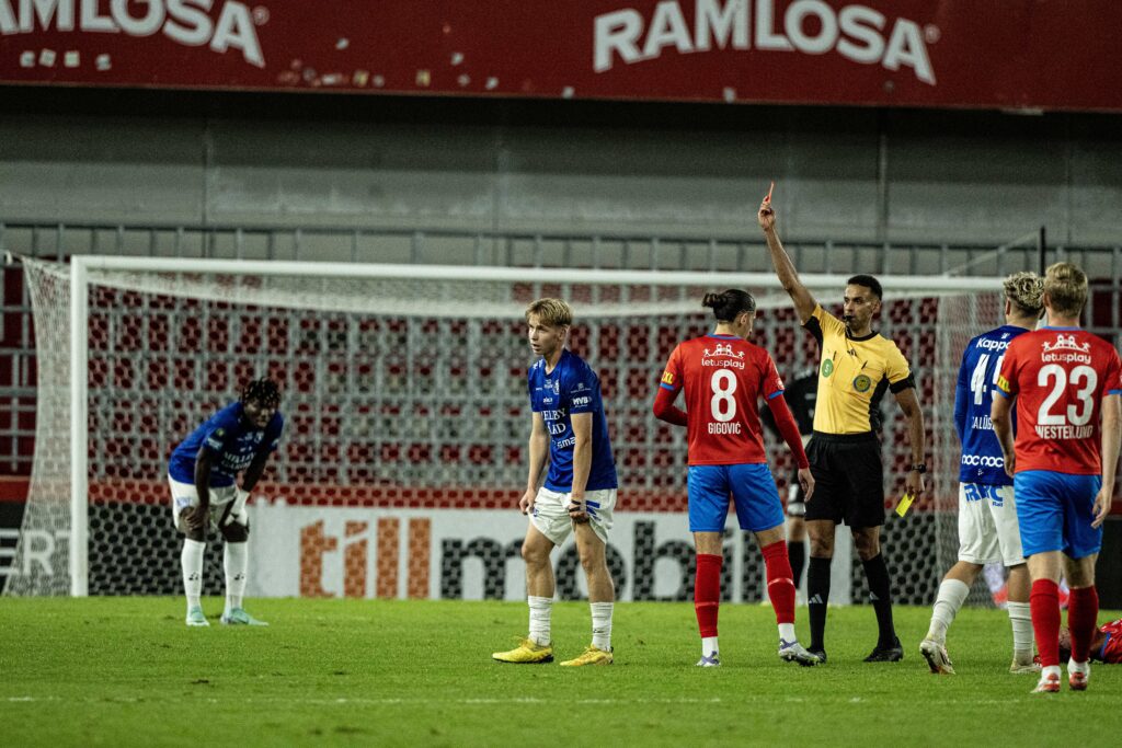Med dryga tio minuter kvar av matchen drog Axel Widjeskog på sig två snabba gula kort, därmed utvisad.